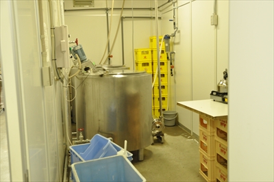 分割した調合室。手前がろ過した水のタンク、奥が味付け用のシロップのタンク