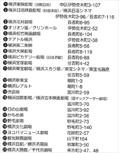 上の図にある映画館名(『シネマシティ ―横浜と映画―』より)