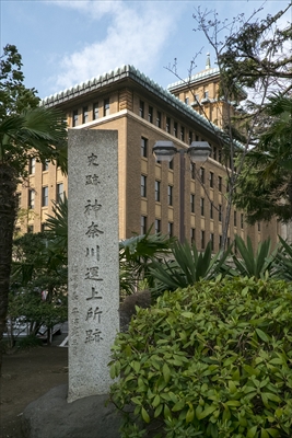 県庁の敷地に、子安と柴田が勤めていた運上所の石碑が残っている