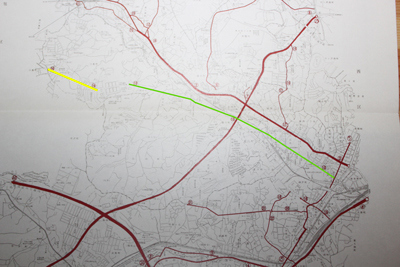 写真中の緑色の線、天王町1丁目~川島町までの延長3250メートルがそれにあたる。