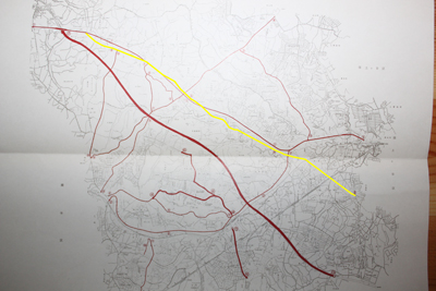 前述の「水道道」以外の2本はそれぞれ、旭区と保土ケ谷区の2区にまたがっているものが1本、そして保土ケ谷区と西区にまたがっているものが1本あるそうだ。それを資料中の地図で確認してみることに。