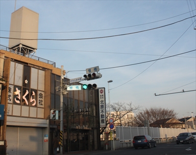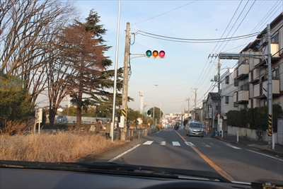 下耕地交差点の様子。この交差点を右折すると水道道に入る