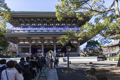 すでに總持寺の総門である三松関(さんしょうかん)を超えて列が伸びていた