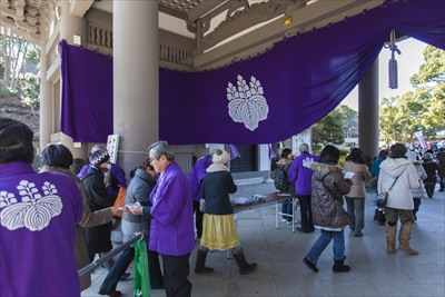 なぜ地元ではなくこちらに来たのか伺うと「總持寺のがいいんだよ。福豆ももらいやすいしね」と答えが返ってきた。ほかにも「川崎大師のすぐそばに住んでいるけど、節分は總持寺」という方がいた。みなさん、毎年こちらの豆まきにきているそう。
