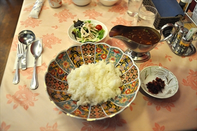 よく煮込まれたハヤシソース。程よい酸味があり、すっごく美味。野菜や肉も柔らかいんだなあ。「これがもう食べられないなんて、寂しいね」と山岸と言いながらいただきました。