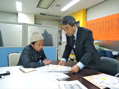 当日いらっしゃったのは2014(平成26)年9月からこちらで勤務されている三觜(みつはし)和哉巡査部長。早速「ゆずマップ」をいただきましょう!
