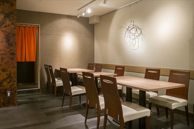 店内には、カウンター席とテーブル席があり、入口の横に6人ほどが入れる個室がある。