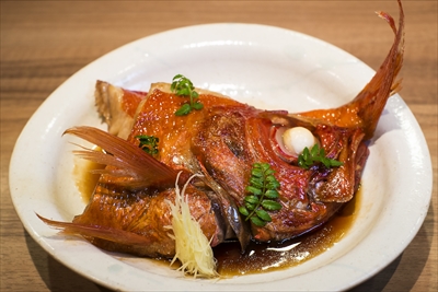作っていただいたのは、キンメ鯛煮つけ(2600円)、カサゴ唐揚げ(1600円)、牛すじ煮込み(1200円)、八種野菜のサラダ(800円・ハーフポーションあり)。