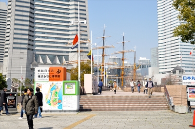日本丸を過ぎて芝生を下り、左手に見える通路の下をくぐると