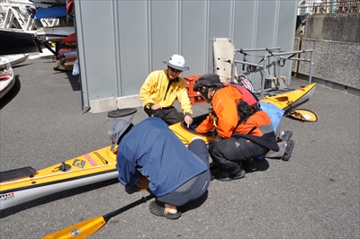 さて、体操が終わると続いてカヤックの構造についての説明を聞く