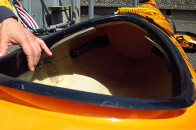 コックピットの前後に壁があり、船首と船尾の空間には水が入らないので沈まない