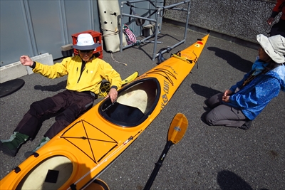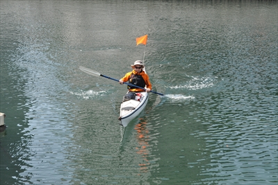 先ほども書いたとおり、カヤックは船首部分と船尾部分に空洞があるので水に浮くし、パドルも棒の部分は中空になっていて水に浮く。よほどのことがなければ転覆しないが、もしその万一の場合には、パドルを落としても沈まないので焦る必要はなく、乗船時に着けるライフジャケットの浮力と、浮き輪がわりにカヤックに捕まっていれば心配いらない。