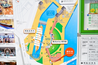 地図の「帆船(はんせん)日本丸」の上に