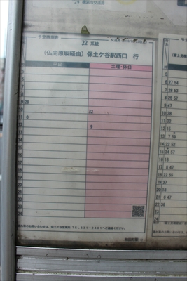 和田町駅から出る22系統「仏向原坂(ぶっこうはらざか)経由保土ケ谷駅西口行き」のバスは、平日午前9時28分発、午前11時発(土曜・休日午前10時32分発、午後0時9分発)の2本となる。