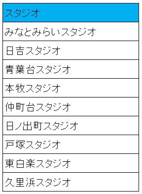 このほかにもスポーツクラブやスポーツセンター、カルチャーセンターの提携クラスなどがある。