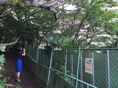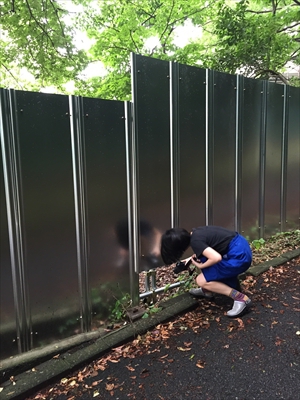 場所によっては塀の中が見え、職人さんたちが建物を解体している様子を確認できた。さらにぐるっと敷地の周りを回る。