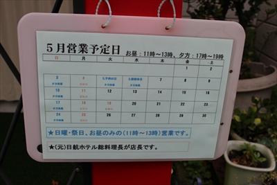 月曜日が定休日なのねえ、じゃなくて「(元)日航ホテル総料理長が店長です」という文字が。