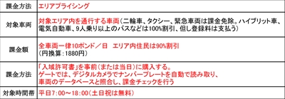 ロンドンでは、2003(平成15)年2月から課金型ロードプライシングを導入。課金方法はシンガポールとは異なり「エリアプライシング」を採用している。