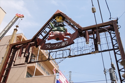 ブレーメン通り商店街入口のサインアーチ。「BREMEN STR」の文字