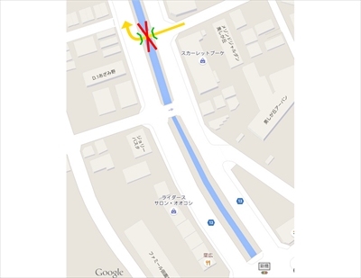 ここは画面手前側の道路にとっての一方通行路の橋だ