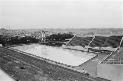 当初あったのは、50メートルプールと飛び込みプールだったはず。どの段階で25メートルプールができたのだろう。