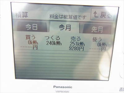 ここで発電量や発電した料金が表示されるディスプレイを見せてくれた。本日は午後1時過ぎの時点で9280円と表示されていた。