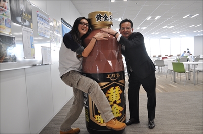 優秀な広報担当! ならば今回の取材も同行してもらいましょう! ・・・というワケでビッグボトル抱えて社内を案内してもらうことに。