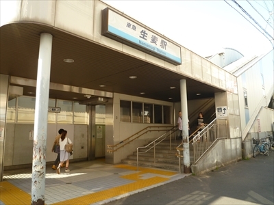 キニナル投稿のお店は、京急線生麦駅から徒歩2分ほどの場所にある。東口から線路沿いを歩いていくと、黄色く目立つお店が見えてくる。そこは、今回取材する「麺屋 蔦重(つたじゅう)」である。