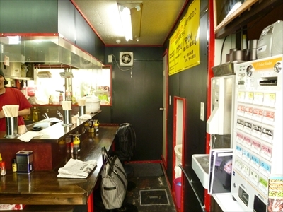 店内は、カウンター席が7席の小さなお店。入って右側には券売機があり「らーめん」「辛らーめん」「黒らーめん」「唐丸(からまる)そば」「つけ麺」の5種類のラーメンで構成されている。