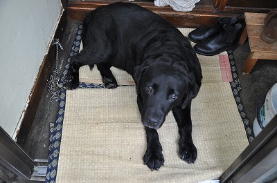 玄関には黒いラブラドール・レトリバーが「なあによお」と円らな瞳で出迎えてくれた。腹の底から湧き上がってくる犬欲が・・・! 一緒に寝たい!!