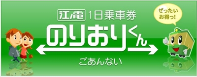 江ノ電ユーザーにはおなじみの「のりおりくん」。江ノ電の全区間で、1日何度でも「のりおり」ができる乗車券で、大人600円、子ども300円。江ノ電各駅で購入可能でホテル、旅館、旅行会社などでも委託販売されている。