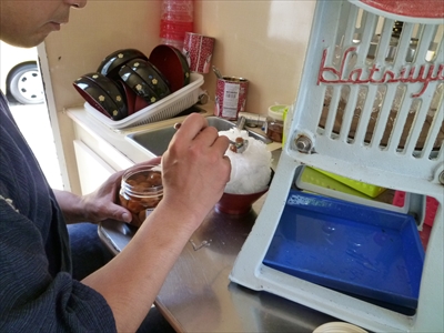 その時、梅干しを漬けていたハチミツもかき氷にかける。