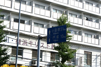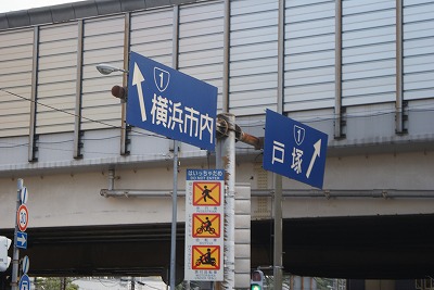 国道1号線に出たら、保土ヶ谷橋までひたすら道なりに進んでいく。すると案内標識に戸塚の文字を発見。まだまだ10km近くある・・・。