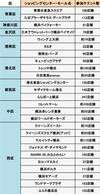 参加するショッピングセンター・モールとテナント数(クリックして拡大)