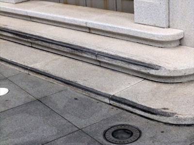 歩道上にあるちょっとした段差もスケボー・スポットになりかねない