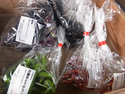 農園で採れたナスやトウガラシなどが売られている
