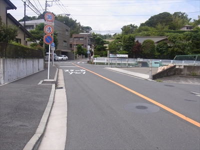 山手学院入口を北上する