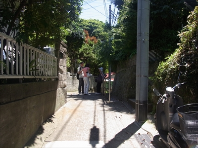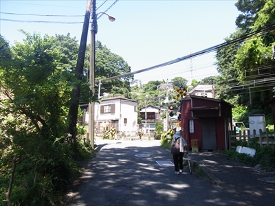 私たちは谷戸に向かって進んでいると、京急線の踏切を越えたあたりで、年配の女性が階段を上ろうとしている場面に遭遇した。