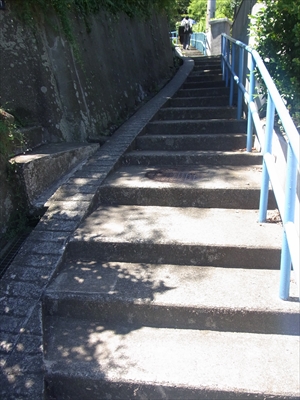 しばらく歩くと、汐入2区に到着し、猛暑の中、階段を上り始めた。