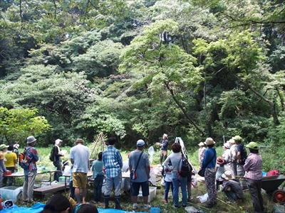 そのため8月の第1日曜日は恒例の虫取り大会を行っています。普段は人が入らないため、「かなりの数の虫が採れます。さらに水田の上の階段を上がった場所には、昔ここにビール工場があった際に湧き水を取っていた、取水口と思われる設備の跡があり、興味深いですよ」と答えてくれた。
