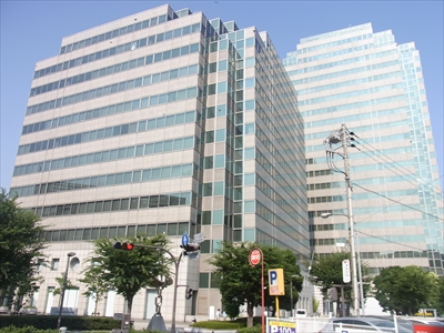 横浜ビジネスパーク内の道路をはさんで向かい側に、NRI横浜ラーニングセンターのビルがある。