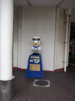 海軍の街と呼ばれている横須賀らしい錨をデザインしたJR横須賀駅の看板と、横須賀海軍カレーのマスコット「スカレー」が出迎えてくれる。