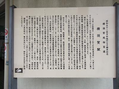開業にいたるまでの経過については、駅舎の入り口に掲げられた「横須賀風物百選」に詳しく記されている。
