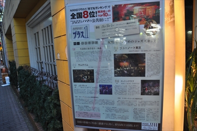 扉の脇に貼られたポスターにはNIKKEIプラス1のポスター。東京の名店ブルーノートやコットンクラブが名を連ねる中、BarBarBarの名が! しかも横浜で唯一ランクインしている模様。これはつまり横浜で1位のお店ということになる・・・スゴイ!