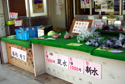 この日も「浜なし」は1時間程度で売り切れてしまい、茄子やピーマンなど野菜が残っているだけ