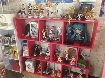 キャラクターグッズが飾られた棚