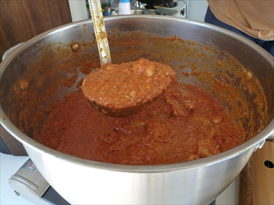 「世界アトミ食堂」では13種類のスパイスを使い、野菜やフルーツをじっくり炒めて甘みを出してソースにする“ソフリット”という西洋料理の調理法を用いてカレーを作っている。小麦粉を使った一般的なカレーとはかなり異なっているとか(「昭和カリー」など、一部、小麦粉を使用したカレーもある)。