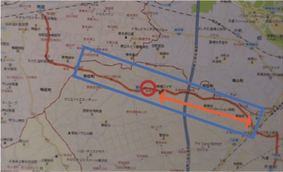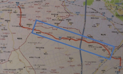 そして、前に書いた、神社やお寺の名前、また、歴史を感じさせるような名前のバス停の「熊の堂」「神明社入口」「猿渡」「長導寺」があるのは、地図中のオレンジの矢印の区間である。