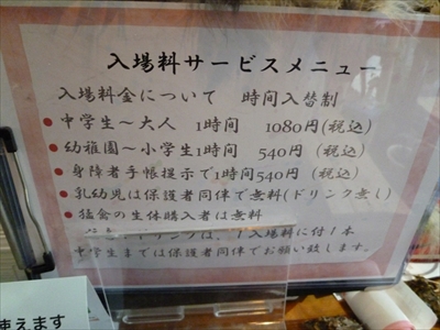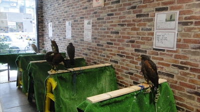 料金は中学生以上1時間1080円、園児・小学生は540円。身障者手帳の提示で540円。いずれもワンドリンク付きだ。こちらでは猛禽類を購入(生体購入)することも可能で、購入者は利用料金が無料になるという。