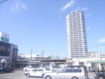 南口の駅前に着くと、駅の反対側に建つ高層マンションが際立っている。これが北口の再開発エリアのようだ。それに比べると南口は昔ながらの駅前の風景を感じさせ、対象的だ。
